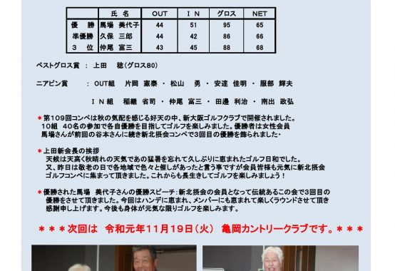 新北摂会ゴルフ 第109回コンペ実施報告