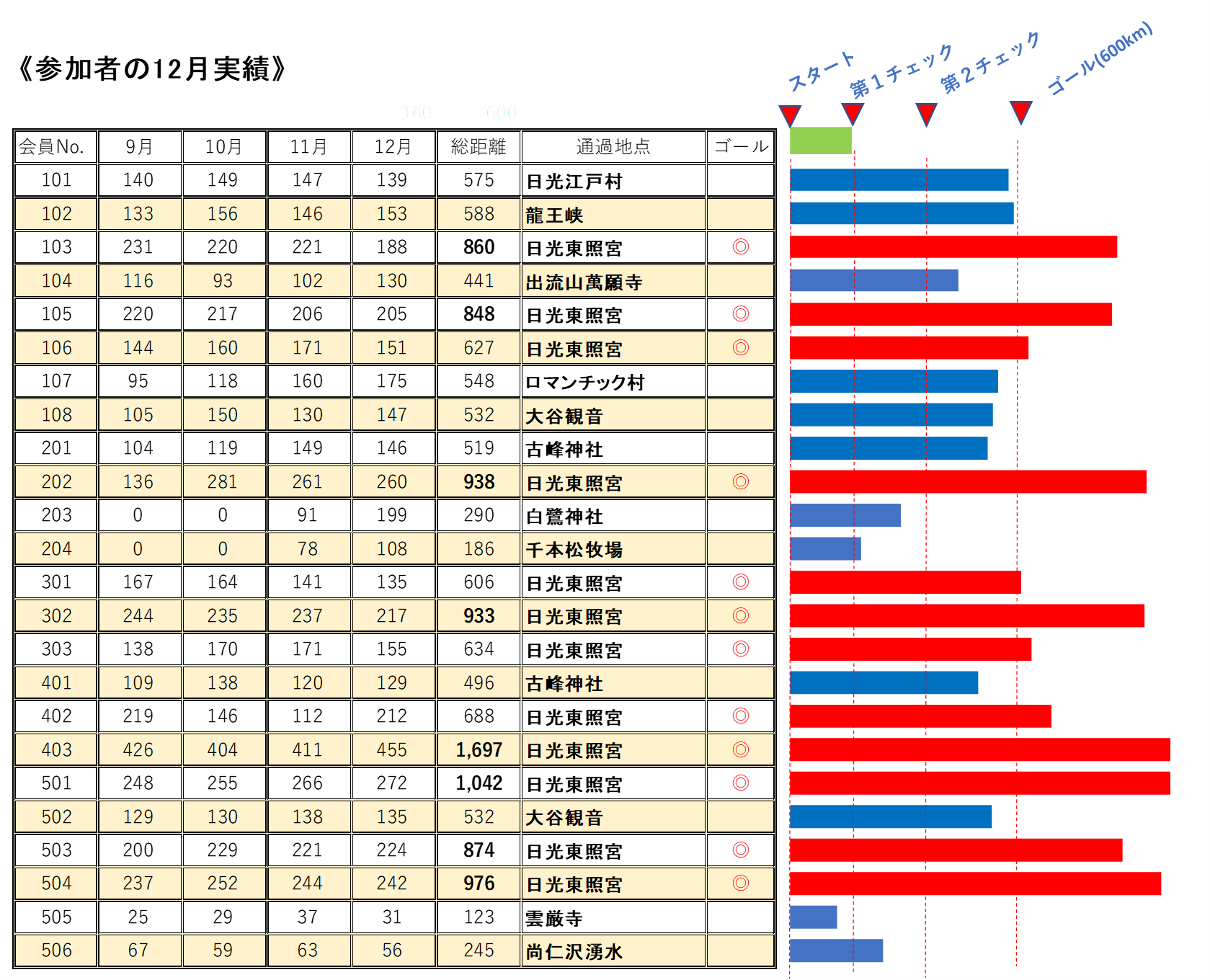 ・参加者24名(12月総合計 656万歩、 12月総合計距離 4,264km)