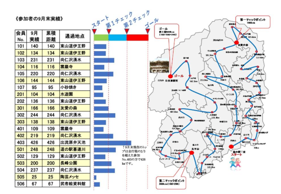 9月度の「とちぎ健康ウォーク」に参加された実績がまとまりましたので、ご報告いたします。