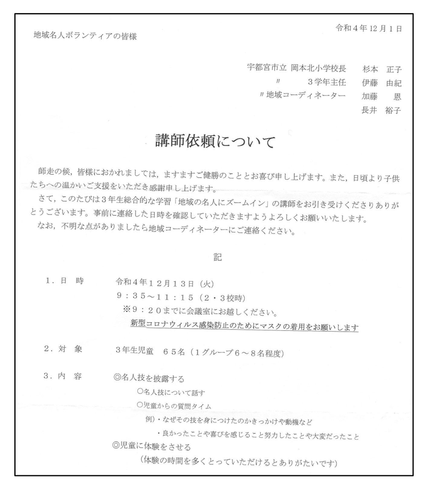 2、日時 令和4年12月13日(火) 9:35~11:15  2・3校時