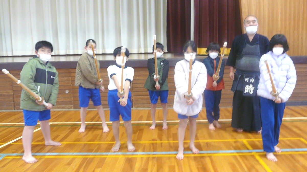 毎年の小学校の恒例行事として、小学生に地域の名人の「名人技の披露と多くの体験をする」ことで総合的な学習の一環となる授業の講師を依頼されましたのでご紹介します。名称は、小学3年生の総合的な学習 「地域の名人にズームイン」です。私は、一応「地域の剣道名人」ということで、令和4年度の事業としての講師依頼を受けました。剣道授業には、寒い体育館に、7名(男子:5名 女子:2名)が参加してくれました。
