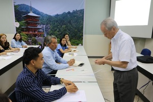 当社をご定年後の2007年(平成 19年)、これまでのベトナムでの活躍を知るJICAから強い協力要請を受け民間人としては初めて日本人材協力センターのJICA責任者であるチーフアドバイザーに就任し、企業経営者を養成する長期ビジネスコース「経営塾」の立ち上げや「日越経営用語辞典」を発行するなど日系企業を含む産業人材の育成を支援してきました。「経営塾」はラオスやミヤンマーにも展開され3ヶ国で600人ほどの卒業生を送り出しました。渡航が出来なくなったコロナ禍の現在もオンラインで授業を行っています。