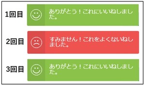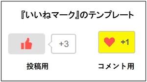 具体的には下図左側の様にデザインされた『いいねマーク』のテンプレートが文章最後の左側下部に配置されます。投稿用は下図左側の左の指マークで、投稿に対するコメント用は右のハートマークとなります。又、下図右側はいいねを1回押したときに画面右下に出るお礼のコメントで数字が1個増えます、次に同じところを押してしまうと数字は1個へり2回目のコメントが出ます。最後(3回目)にもう一度押すとお礼のコメントと共に数字が元に戻ります。