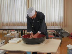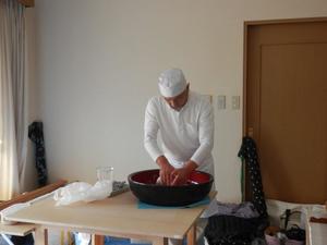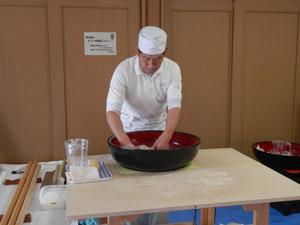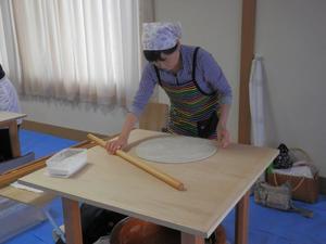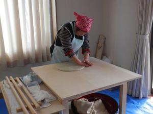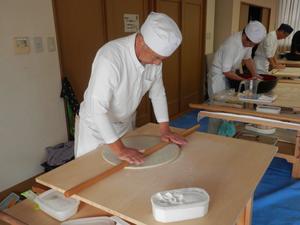 入会者1名、女性で全くの初心者。そば打ちに対する意欲は旺盛だ。厳しくても楽しい「そば打ちの旅」の始まり。みんなで優しく見守ってやりましょう。