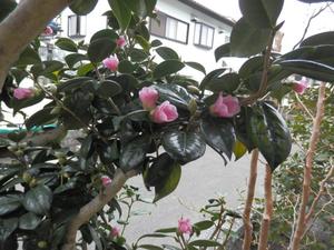 侘助の花が咲き始めた。春はまだ先だよという、申し訳なさそうな花の咲きようだ。