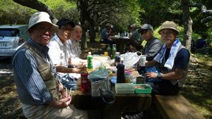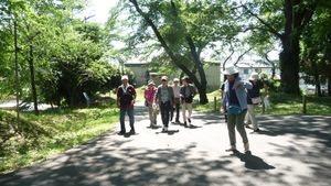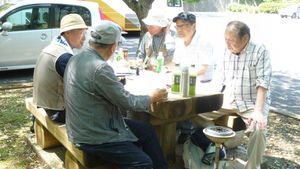 バスで黒羽中心部へ移動し、大雄寺~芭蕉公園~芭蕉の館~黒羽城址公園と句碑巡りをしながら途中某有名女優の観光キャンペーンスポットの竹林を通ってバスへ戻り、駐車場周辺の木陰で思い思いにランチ。木蔭と爽やかな風が相まって快適なひと時でした。
