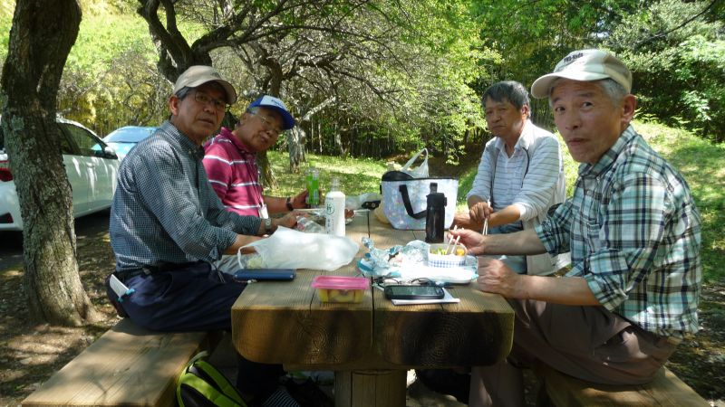 バスで黒羽中心部へ移動し、大雄寺~芭蕉公園~芭蕉の館~黒羽城址公園と句碑巡りをしながら途中某有名女優の観光キャンペーンスポットの竹林を通ってバスへ戻り、駐車場周辺の木陰で思い思いにランチ。木蔭と爽やかな風が相まって快適なひと時でした。