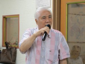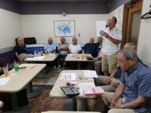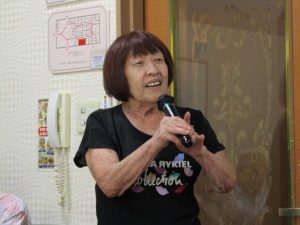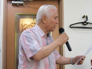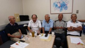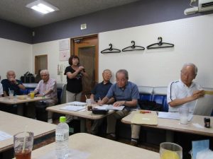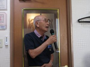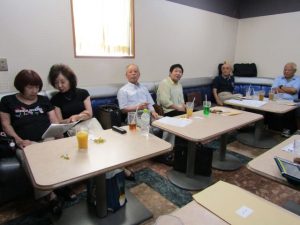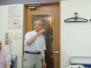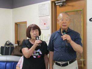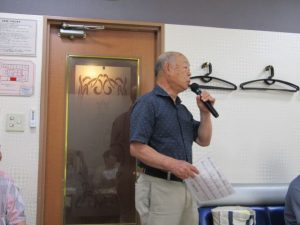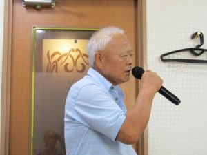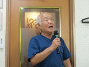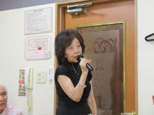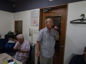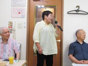 8月度はお盆の関係で第4週水曜(通常は第3週水曜)に変更。本日も朝から茹だるような猛暑で参加数が若干心配されましたが、毎月のカラオケでの発散で体力気力満々、会員14名と新会員1名でなんと普段よりも多い15名の参加。今回は久し振りにカメラを持ち込んで部屋の片隅に集合しての写真撮影からスタート。殊の外難しかった課題曲「桜の花の散るごとく」が今月で終了し、来月はスンナリと歌えそうな「春待ち坂」で難曲を乗り越えた皆の表情もなんなくホッとしたよう。 課題曲を一通り歌ったあとは各人それぞれの持ち歌を4周歌って今日は時間いっぱいになりました。