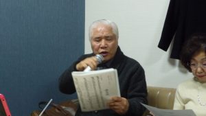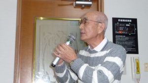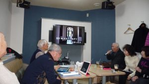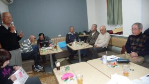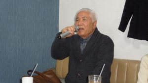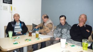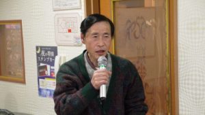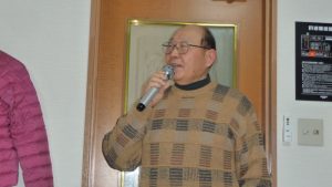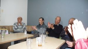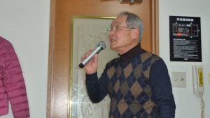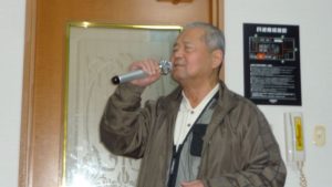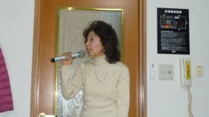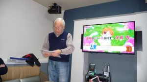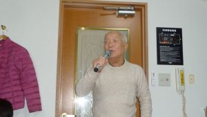 13時前には三々五々会員が集まってきて新年の挨拶やら年末年始のそれぞれの体調の報告やらでかまびすしいひと時が経過。令和2年の最初の月例会は参加13名でほぼ満席状態。この時期は寒さ対策で着膨れ気味のため、夏場に比べるとなんとなく圧迫感のあるいつものカラオケルーム。事務局からご挨拶があっていよいよ本年最初の練習がスタート。今月の課題曲を一人ひとり歌った後に世話役から来月課題曲の歌唱指導を受けて一部終了。二部はそれぞれの持ち歌を時計回りで歌い、一人4曲を歌って楽しいひと時を過ごした。