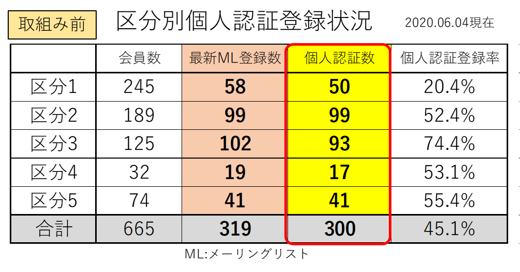 ➀MLに登録されているがまだ個人認証登録していない方への働きかけ:14名