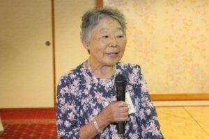 9月27日(土)ホテルニューイタヤにて2025年友愛懇親会を開催いたしました。80歳以上対象会員173人にご案内させて頂き、役員合わせて23人の方に参加いただきました。北垣支部長より開会の挨拶と松愛会活動報告並びに役員紹介をさせて頂きました。早速、乾杯に引き続いて和やかに昼食懇談が始まり、参加者一人づつ自己紹介と近況報告を頂きました。