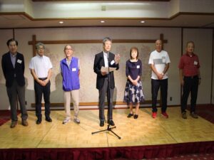 今回参加頂けなかった方からも、ハガキで近況報告を頂き、お仕事の方や地域の役員などで活躍されている方や、絵画・ゴルフ・男性合唱団で趣味を楽しんでいる方や、地元に戻り漁師やミカン旁をされている方など、会員の皆様がお元気に活躍されている様子が伝わってきました。