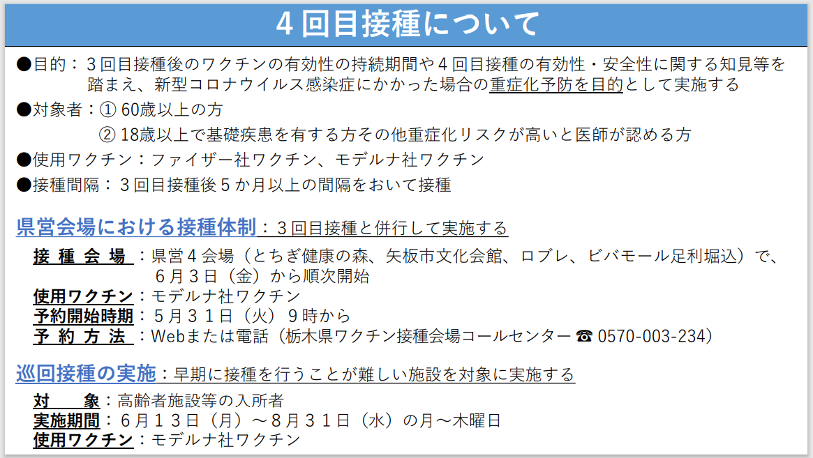・6月3日より、60歳以上の方は4回目接種が始まります。