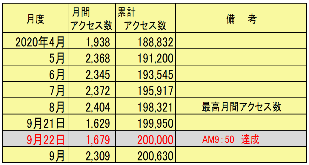 以下は20万回アクセスまでの軌跡と代表者コメントです。