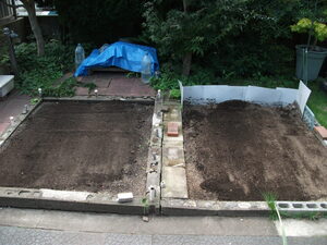 前々から趣味として行っていた家庭菜園もここ4~5年諸般の事情?で野菜つくりを休んでいました。ご存じのようにコロナの影響でどこにも出られず少しイライラしていたところ、息子より「また野菜作りしたら」言われどうせやるなら畑を広げようと昨年ブロックと土を購入し倍に広げました。(とは言っても猫の額ほどです。)