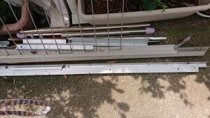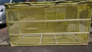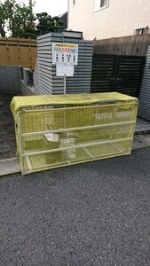 《ゴミステーション制作》 金属パイプやアルミ材、、ビニルパイプ、ビニルパイプ廃材などを再利用し2000円以内でできる物を考えました。購入部材は鉄板ビス20mm、25mm、タイラップ20cm、蝶番2個です。寸法は横幅156cm、高さ66cm、奥行き53cmで全体を黄色の防護ネットで被い上蓋をつけ、45cmゴミ袋が6袋入り4分類対応できる(資源、危険、不燃、焼却)道路の側溝場に設置することにしたため奥行きを53cmにしました。(写真4)廃材利用(写真5)奥行き53cm(写真6)正面(写真6)、もちろんカラスや犬、猫などの動物対策もしております。