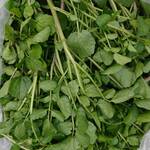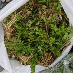 見つけた!クレソンだ。根っこを痛めないように途中から折って摘む。25Lのビニール袋いっぱい摘んだ。(写真④)