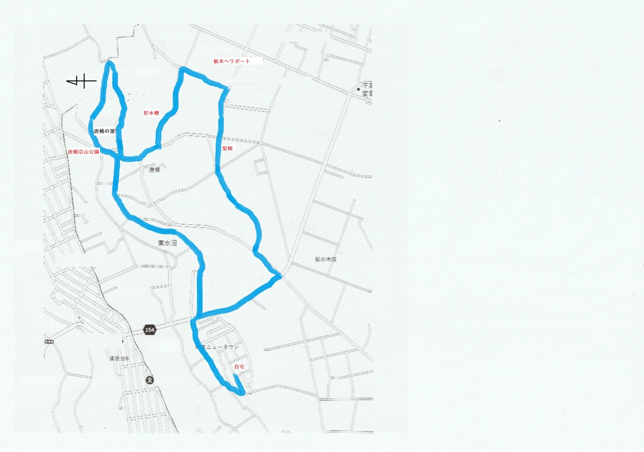 今回は、私の散歩道の最終編で8.5km(13,000歩)のコースです。自宅から少し傾斜道を歩いて行き農道を通って梨畑を通り、栃木へリポート(芳賀台)経由して唐桶宗山公園(唐桶の溜)を回って自宅へ戻るコースです。