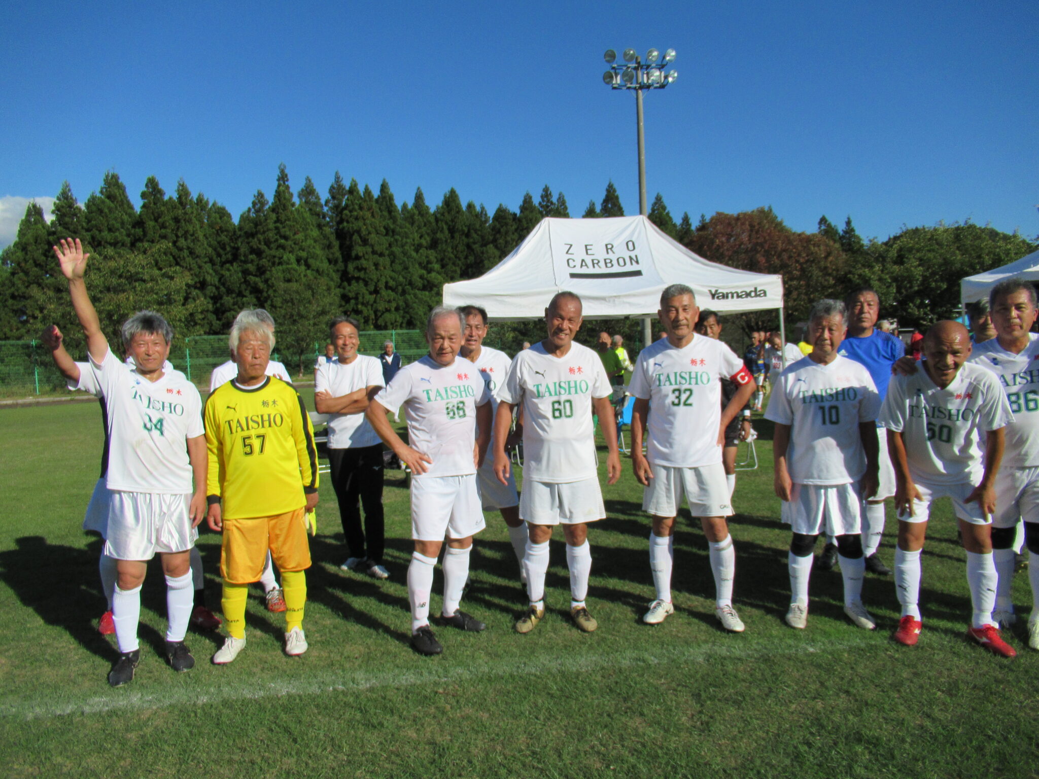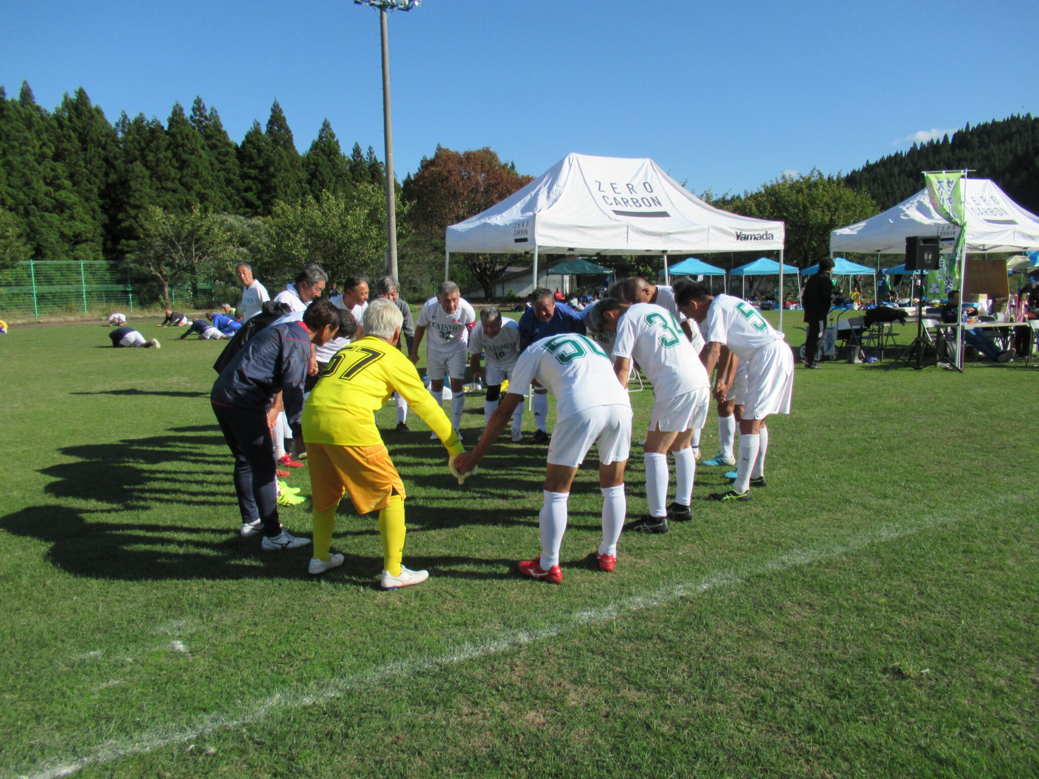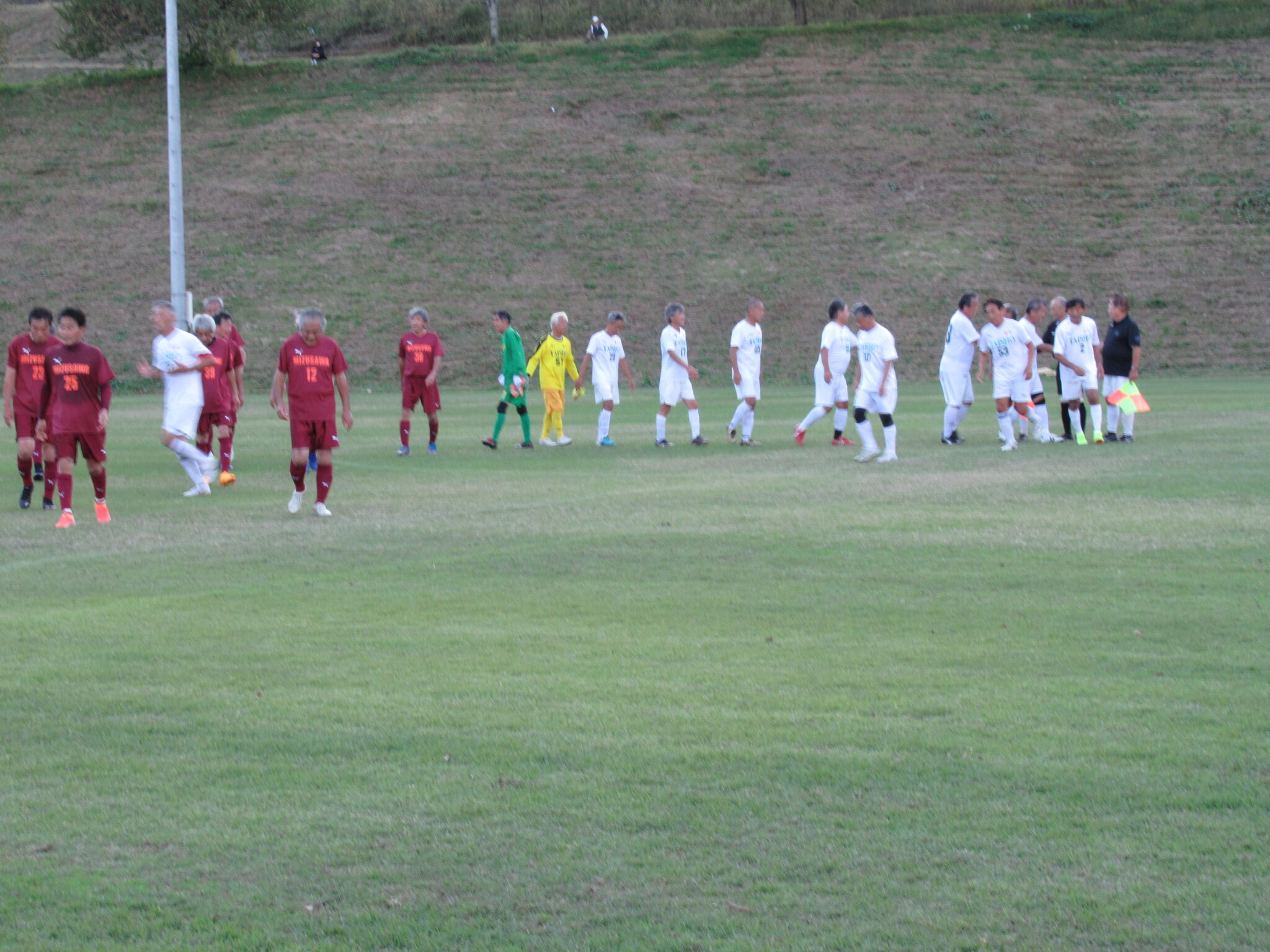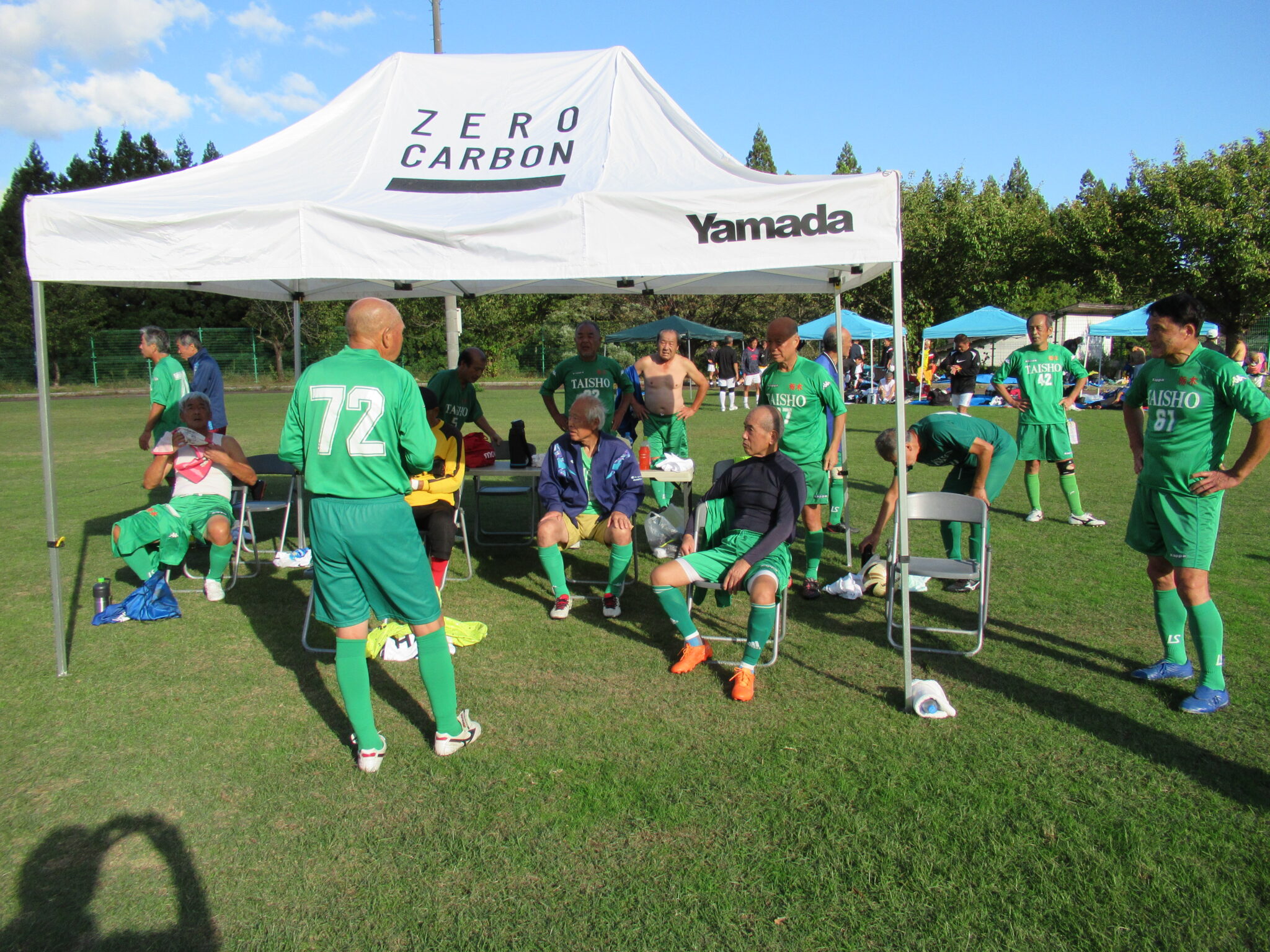 二日目は予報が当たり雨模様で東北の雨は冷たく感じられ動きが悪く優勝に一歩届かず両チームとも準優勝で昨年より良い成績を収め新米60キロの精米小分け袋で頂きました。当日、家へのお土産を持ち帰ることが出来ました。試合中「70過ぎてこんな雨の中でサッカーできる健康に感謝しないとな」との声もあり感謝、感謝の大会でした。