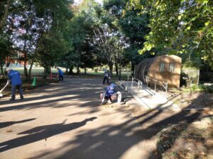 今年は9月になっても夏の陽気が続きましたが、今回はようやく秋らしい爽やかな気候の中での開催となりました。参加者は前回より5人増え、17人で御幸公園清掃活動を行いました。