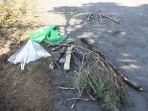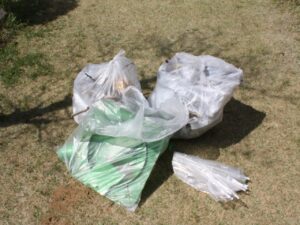 ビニール傘や工事用コーン、木の枝が多く45Lのゴミ袋3袋が一杯になりました。