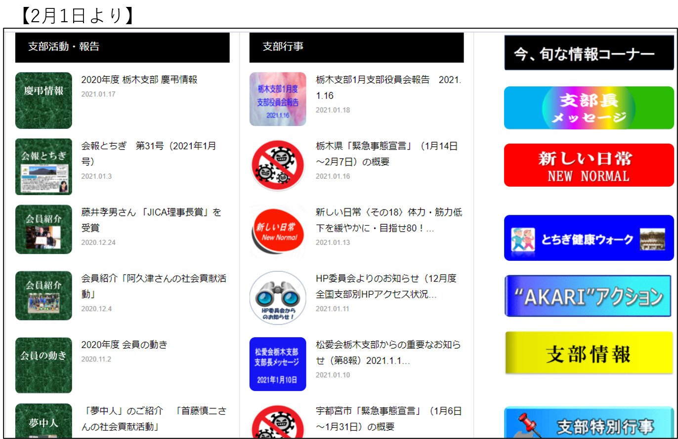 さて、右図下段はWPに変わってからのHPのトップ画面でしたが2021年2月1日より上段の画面に変更し