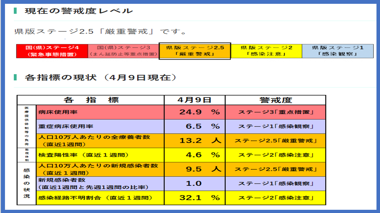・1都3県(東京都、神奈川県、埼玉県、千葉県)及びまん延防止等重点処置区域を含む都道府県への不要不急の移動自粛要請