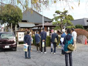 ようやく夏日から秋の紅葉シーズンを迎えました。今年の社会見学会は昨年のNHK大河ドラマ『鎌倉殿13人』に引き続き『どうする家康』のゆかり地巡りを11月9日(木)に壬生町の歴史散策を開催いたしました。今回は定員30人に対して9月1日申込開始で10月20日締切りで予定していましたが、9月9日で定員の30人に達しました。参加者の内訳は会員22人、会員の配偶者は5人、知人、友人が3人で計30人の参加でした。