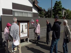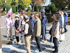 各コースの見学コースはガイドボランティアの説明を聞かれて質問もされて有意義な散策となりました。見学も終わり城址公園の前で記念撮影を撮り、お楽しみの昼食会場へ歩いて移動。