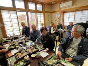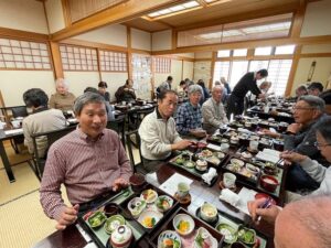 皆さん満足いただきましたでしょうか、楽しい食事も終わり最後に壬生町観光協会の壬力の町ガイドボランティアの副会長から、1月21日(日)に壬生町観光協会で仮称ウオーキングを開催いたしますので参加の呼び掛けのお願いと本日のお礼の挨拶をいただきました。担当から来年も楽しい企画をいたしますので参加のお願いをして終了いたしました。