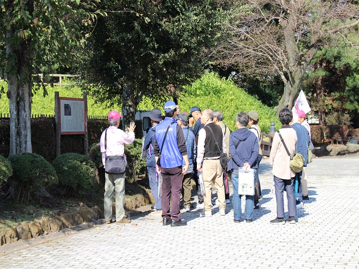 各コースの見学コースはガイドボランティアの説明を聞かれて質問もされて有意義な散策となりました。見学も終わり城址公園の前で記念撮影を撮り、お楽しみの昼食会場へ歩いて移動。