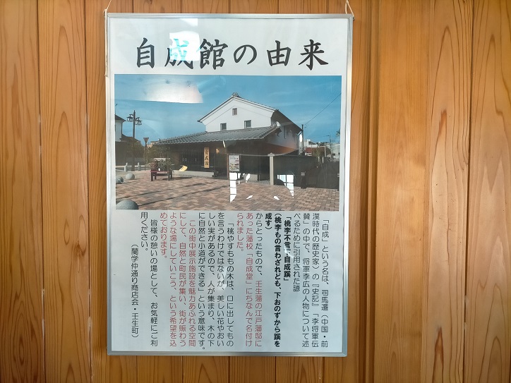 石﨑家は代々壬生藩の藩医として活躍し、石﨑家の長屋門は典型的な五軒長屋の形式を今に伝えている。石﨑邸の前が自成館で10分ほどトイレ休憩。
