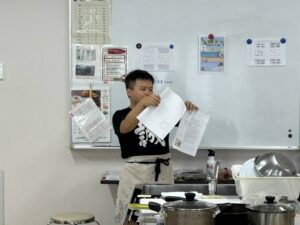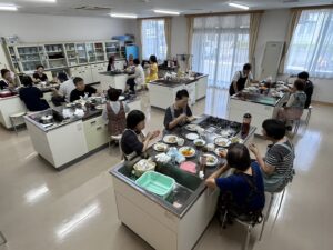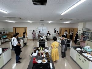 今回の参加者の中で男性が3人おりました。料理男子の方は自ら率先して調理しておりました。先生の指導を熱心に動画を取っている姿が印象的でした。作るより、食べる事を楽しみにきた男性参加者もおりました。