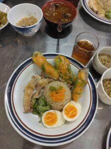 第3回目のとち愛会では、お料理教室に挑戦しました。インドネシア人のヘンドラ先生(本業はエンジニア)をお迎えして開催しました。始めにヘンドラ先生より今回のメニューの説明をして頂き、メイン料理のチキンライスはお馴染みのケチャップ味ではなく、チキンスープで炊き込むチキンライスである事、又生春巻はにんじんをふんだんに使い一度炒めてから巻く春巻である事、デザートには普段お目にかからない緑豆りょくとうを使ったスイーツ等初めて食するメニューの数々の説明がありました。
