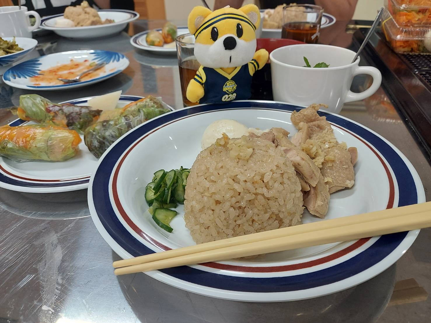 第3回目のとち愛会では、お料理教室に挑戦しました。インドネシア人のヘンドラ先生(本業はエンジニア)をお迎えして開催しました。始めにヘンドラ先生より今回のメニューの説明をして頂き、メイン料理のチキンライスはお馴染みのケチャップ味ではなく、チキンスープで炊き込むチキンライスである事、又生春巻はにんじんをふんだんに使い一度炒めてから巻く春巻である事、デザートには普段お目にかからない緑豆りょくとうを使ったスイーツ等初めて食するメニューの数々の説明がありました。