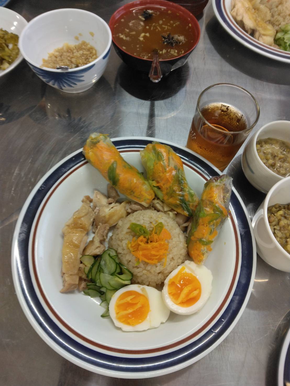 - チキンライスの煮込みスタート
