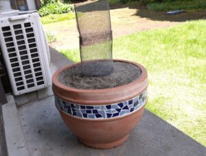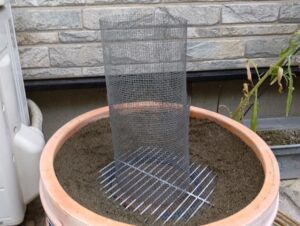 鬼怒川の鮎釣りが5月26日(日) 解禁となり、鮎を食べる季節となりました。そこで早速鮎焼き器を作ろうと思い材料集めをしました。火を扱うので器は陶器製の植木鉢、鉢は鮎を一度に20匹は焼きたいので大きなものとしてホームセンターへ出かけました。結果、条件に合う内径39㎝の植木鉢を見つけましたが思った以上に重かったです。これに入れる砂も併せて購入しました。植木鉢は2980円、砂は2袋で480円でした。