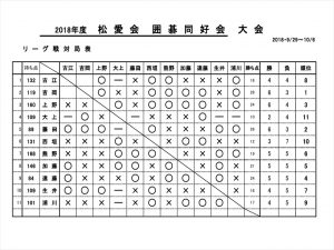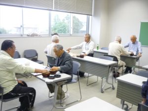 9/29 日と10/6日2日間で 囲碁同好会の大会を開催しました。いつもの月例会の会場である平石市民センターで行いました。11名全員参加の総当たりリーグ戦で、最後まで順位が定まらない非常に熱戦な展開でした。この2日間は気合が入っていて、普段は遅れてくる人も開始の午前9時には全員集まりました。いつもは速く打つ人もこの大会はじっくり考えて打つなど、真剣さが出ていました。(商品を意識してのことかも?)世話役の遠藤さん、お疲れさまでした。結果は別表の通り、最年長の吉岡さんが優勝しました。
