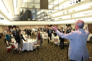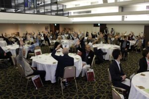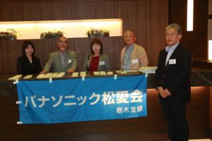 議事終了後、新支部役員の小林さんの音頭で『松愛会スローガン』を全員で唱和した後、協賛会社のパナソニックホームズ北関東株式会社 営業推進部の塩川次長様・武藤様、パナソニック補聴器株式会社営業部首都圏ブロック、(群馬・栃木・茨城エリア)渡邊マネージャー様、津吹チーフ様よりご挨拶をいただき、第一部を滞りなく閉会いたしました。