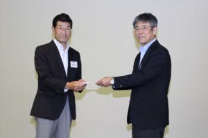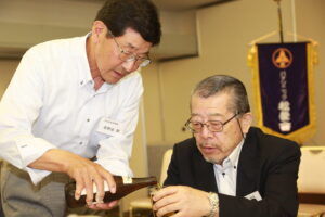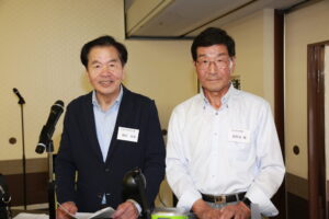 今大会で退任される、お二人へ松愛会本部よりの記念品を北垣支部長より贈呈しました。退任される萩野谷さん、萩原さんの順でご挨拶をいただきました。