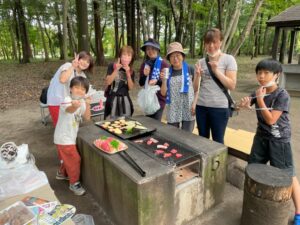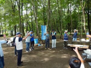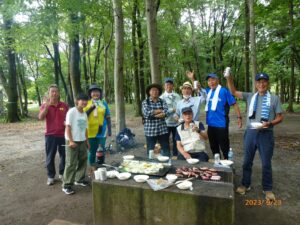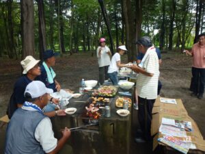 9月23日(祝・土)に健康づくりの一環として「健康ウォーキング&バーベキュー」の支部行事を宇都宮市営・みずほの自然の森公園で開催しました。第1回以降コロナ感染拡大の影響で2年、昨年は台風の影響で3年中止しました。今回も前日から当日の朝まで雨が降っていましたが、参加者の思いが天に通じたか天候が回復し4年目にして実施することができました。3世代参加者2組、ご家族での参加3組をはじめ30人の参加で行いました。