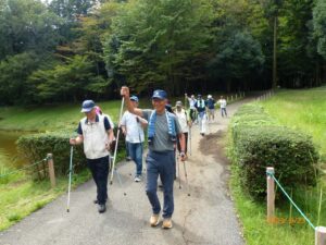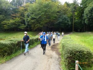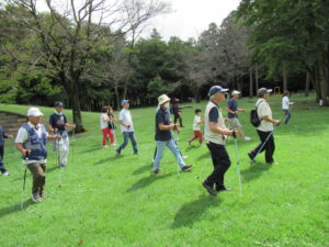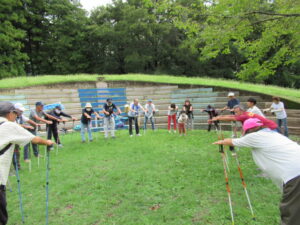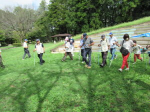 ◆午前中はポールウォーキング体験学習(日本ポールウォーキング協会マスターコーチ山形正巳講師)