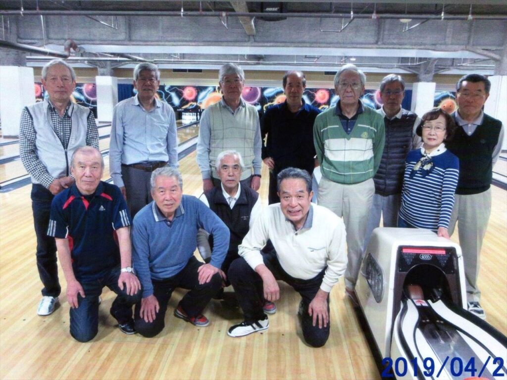 2019年度第1回目(通算34回目)の4月度例会を、桜の満開時期を少し過ぎたところで、桜吹雪も見られる暖かい日差しの天候の中、参加者12名が予定通り富谷市の「ボウルサンシャイン富谷」に集合し開催しました。今回も2月度と同様の最多の12名にご参加頂き、5分間の練習投球と記念撮影の後、久しぶりに参加頂いた大黒会員の始球式の後、昨年度の年間実績を基に再設定した新ハンデキャップでの競技開始となりました。今回の成績は何故か全員共に1ゲーム目と2ゲーム目との得点差が大きく、ネット300点越えは無く低調でしたが、勝敗は新ハンデキャプが大きく影響して大変白熱した展開となりました。優勝は過去から意外性の強い印象の木下会員(2月度は11位、3月度8位)が見事新年度初回の栄誉を獲得、準優勝はこちらも昨年11月以降久し振りの参加を頂いた冨塚会員が獲得、3位もまたまた2か月間低迷を続けていた星会員となりました。