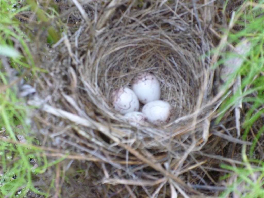 ジュースを頂き作業を再開したときに浜本さんが小鳥の巣を発見、なんと卵が4個も入っておりびっくり、その場所だけは除草せずにそのままに、無事な成長を祈る。