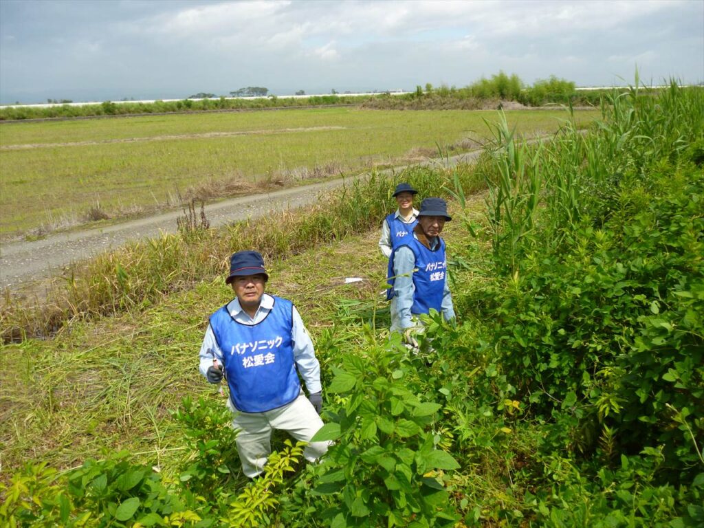 植林された樹は小さく蔓に覆われたりからまれたり、また葦はしっかり伸びて背丈程度、皆さんの応援を頂きながら1時間20分程度の作業で終了。