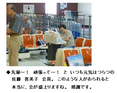 3位は福島OB会で数少ない女性軍の中から常に旺盛的に会に参加を頂き皆さんに微笑みを与えてくださっている、佐藤 喜美子会員でした。終始たいへんなる盛り上りで楽しかった大会でした。