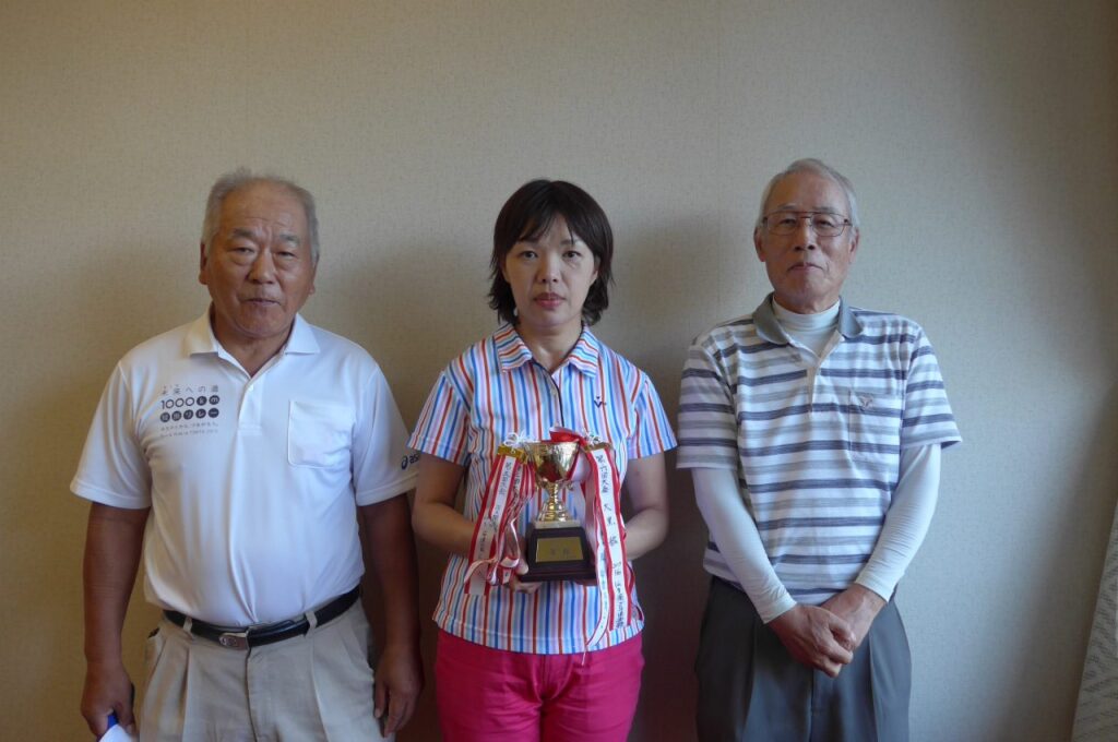 - 左から 2位長谷部さん(郡山分会) 個人戦優勝の高橋さん(福島分会) 3位原さん(郡山分会)