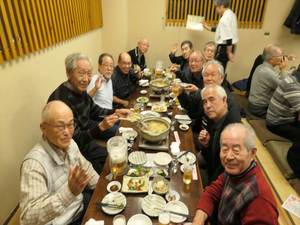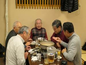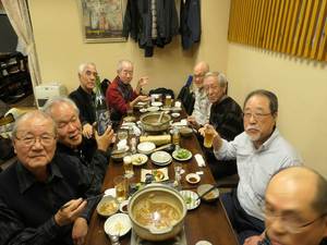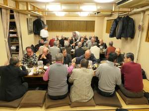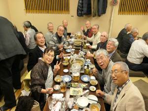 24日の女子駅伝優勝決起大会も兼ねての実施となり、本部の遠藤副会長様の乾杯のご発声により懇親会がスタート。今回はお店のご厚意で有名ブランドの日本酒(獺祭 他)も多数提供され、いつもながら飲むこと飲むこと、会員の皆様大いに食べて飲んで年忘れと決起大会を楽しまれました。