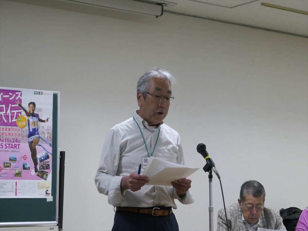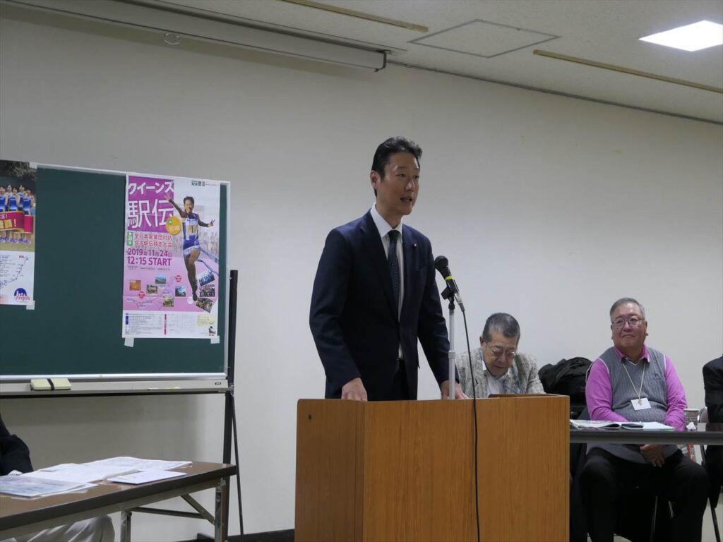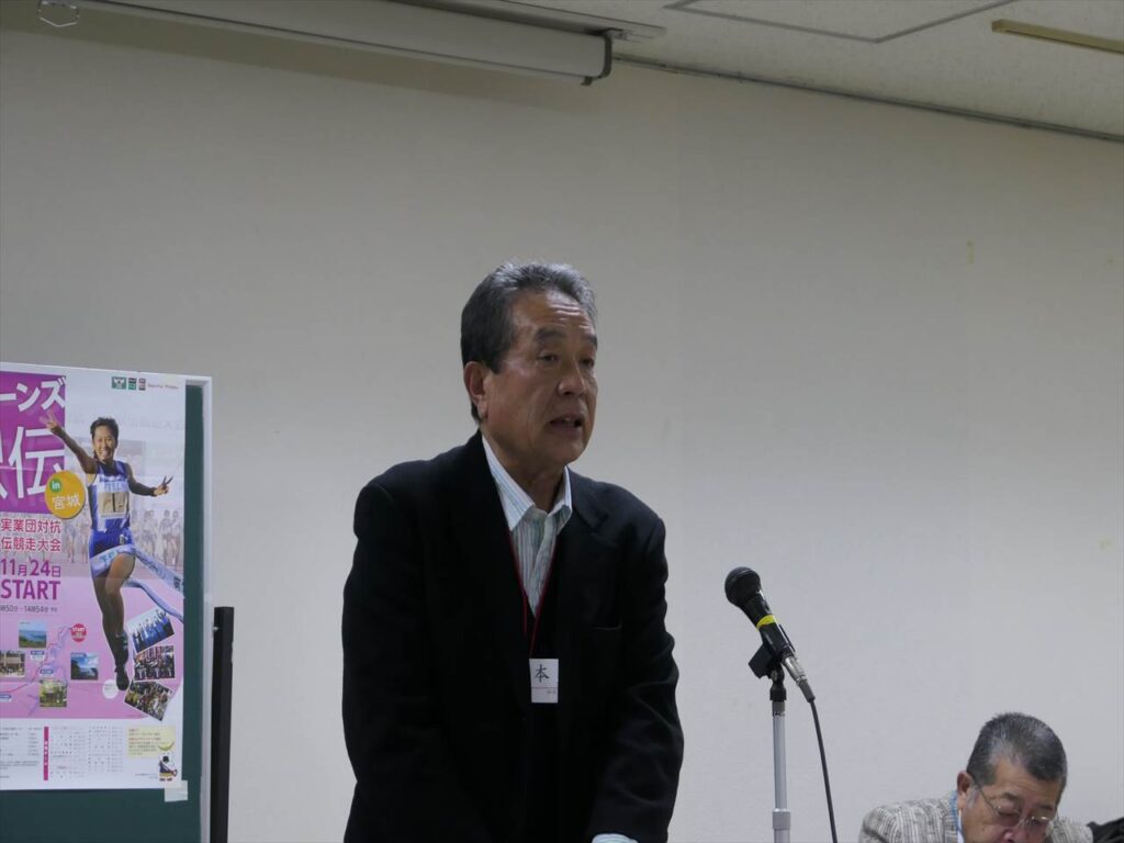 また、翌日開催される第39回全日本実業団対抗女子駅伝大会「クイーンズ駅伝in宮城」前回優勝のPanasonicチーム佐藤部長が来席し、応援の依頼と3連覇への力強いご挨拶をされました。