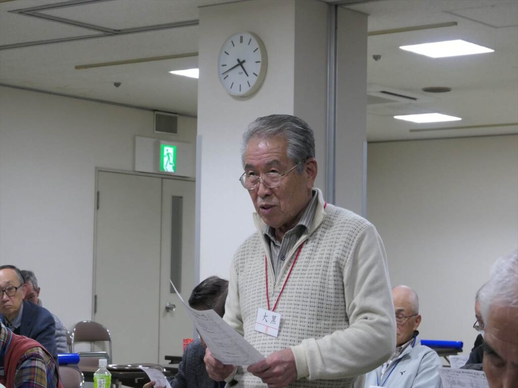 ・ゴルフ部会 藤田副部長 ・歩こう部会 田代部長 ・麻雀部会 森岡部長 ・グラウンドゴルフ部会 富田部長 ・美食倶楽部 大黒部長 ・ボウリング部会 坂井部長 ・釣仙会 森岡さん